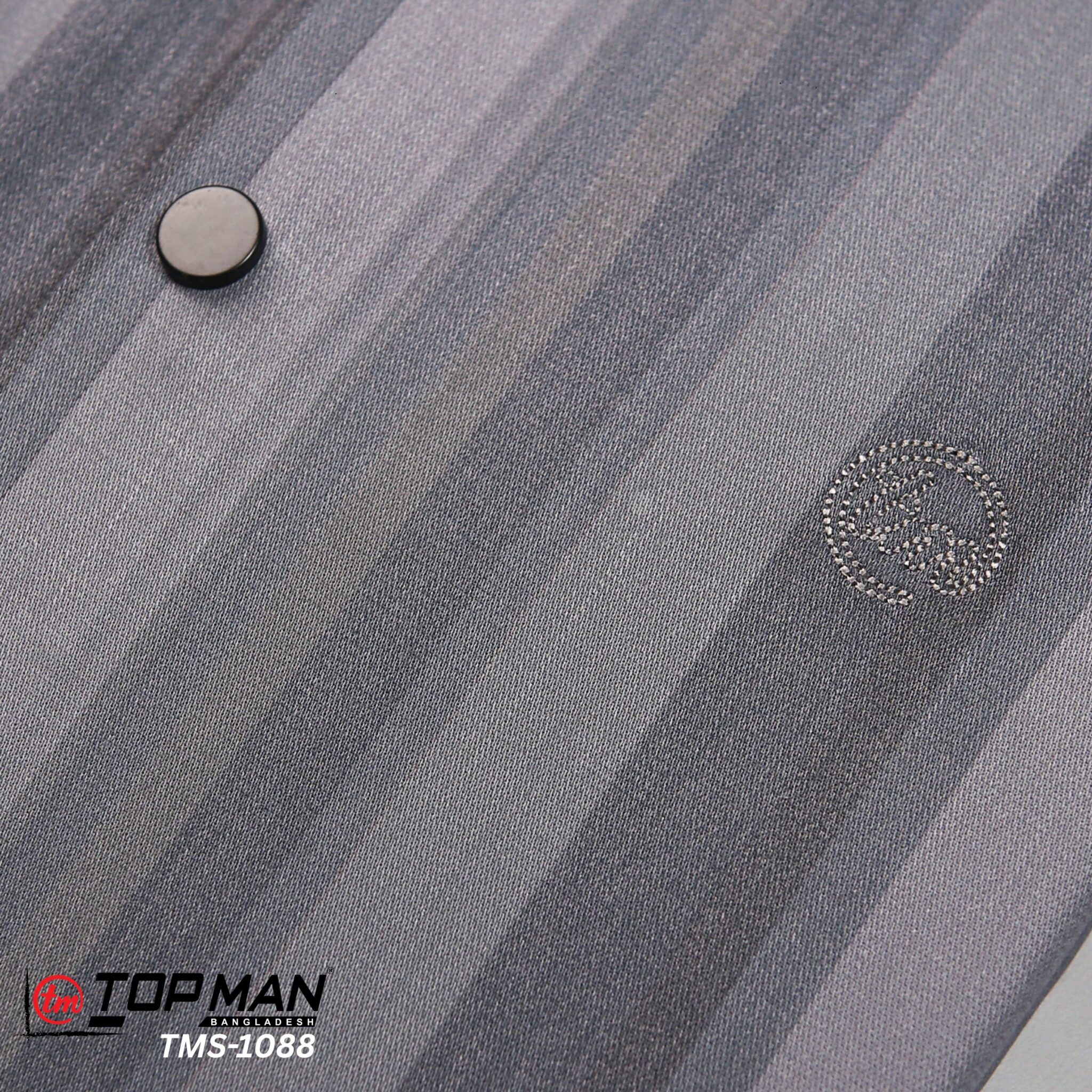 circular black snap fasteners that provide a clean, contemporary look compared to traditional buttons.